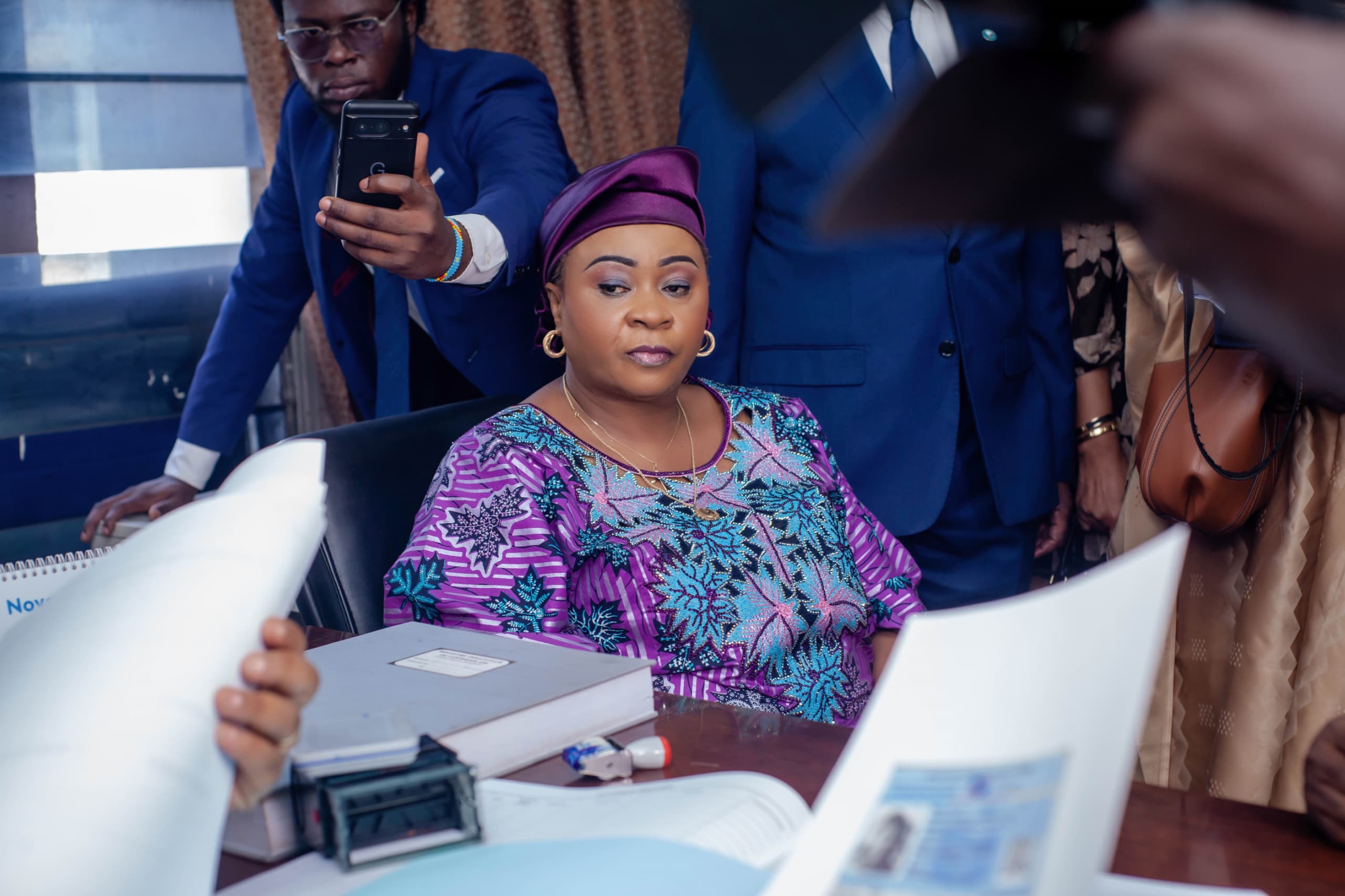 La candidate a accompli cette formalité au premier bureau de réception des candidatures, installé au service courrier du président intérimaire de la chambre basse du Parlement. Elle était accompagnée du député national Christian Mwando Nsimba, ainsi que du Secrétaire national chargé des relations avec le Parlement, Jean René Ekanga.