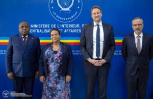 Kinshasa, 12 Novembre 2025 ( TOP243NEWS ).- Le Vice-Premier Ministre, Ministre de l’Intérieur, de la Sécurité et des Affaires coutumières, Jacquemin Shabani Lukoo, et la Ministre d’État en charge des Affaires étrangères, Thérèse Kayikwamba Wagner, ont co-présidé ce mercredi une importante séance de travail avec une délégation française conduite par Frédéric Jung, Directeur des Nations Unies au ministère français de l’Europe et des Affaires étrangères.