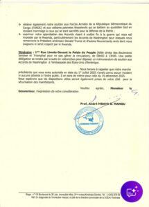 À l’issue de la manifestation, une délégation restreinte se rendra à l’Ambassade des États-Unis d’Amérique à Kinshasa afin d’y déposer un mémorandum de soutien aux Accords de Washington.