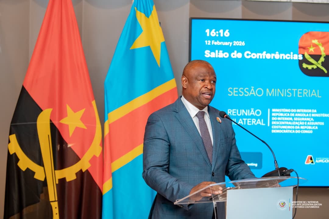 Luanda, 13 Février 2026 ( TOP243NEWS ).-La coopération sécuritaire entre la République démocratique du Congo et la Angola vient de franchir un cap décisif. En déplacement officiel à Luanda, le Vice-Premier Ministre, Ministre de l’Intérieur, Sécurité, Décentralisation et Affaires Coutumières, Shabani Lukoo, a procédé à la signature de l’accord portant création de la Commission Permanente mixte Défense et Sécurité avec son homologue angolais, Manuel Gomes.