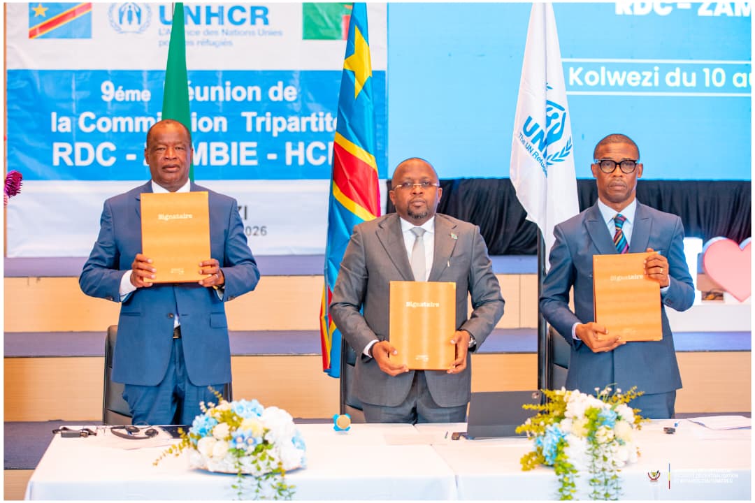 Le Vice-Premier Ministre, Ministre de l’Intérieur, Sécurité, Décentralisation et Affaires Coutumières, Shabani Lukoo, a présidé, jeudi, à Kolwezi la cérémonie de clôture de la 9ᵉ réunion de la Commission tripartite RDC-Zambie-HCR. Aux côtés de son homologue zambien, Jack Mwimbu, ministre de l’Intérieur et de la Sécurité intérieure, le VPM congolais a conduit les travaux consacrés à la situation des réfugiés congolais vivant en Zambie ainsi que des réfugiés zambiens établis en République démocratique du Congo. La rencontre s’est tenue au village de congrès de Kolwezi, en présence notamment du représentant ad intérim du HCR en RDC, Pierre Atchom, de la gouverneure du Lualaba Fifi Masuka et de plusieurs autorités provinciales.