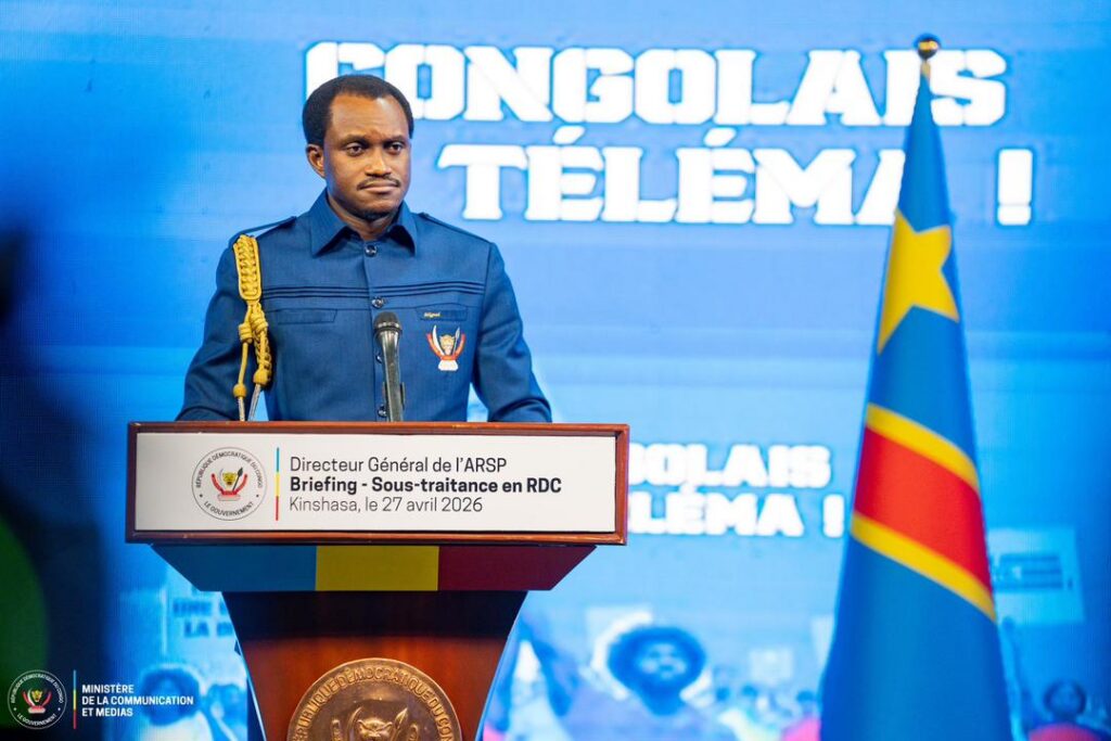 Kinshasa, 28 Avril 2026 ( TOP243NEWS ). -Le Ministre de la Communication et Médias, Patrick Muyaya Katembwe, a coanimé lundi, un briefing presse au studio Maman Angebi de la RTNC, aux côtés du Directeur général de l’ARSP, Miguel Kashal Katemb. Cette rencontre avec les médias s’inscrit dans la volonté du gouvernement de renforcer la transparence et de vulgariser les avancées liées à la régulation de la sous-traitance, considérée comme un levier stratégique pour le développement économique national.
